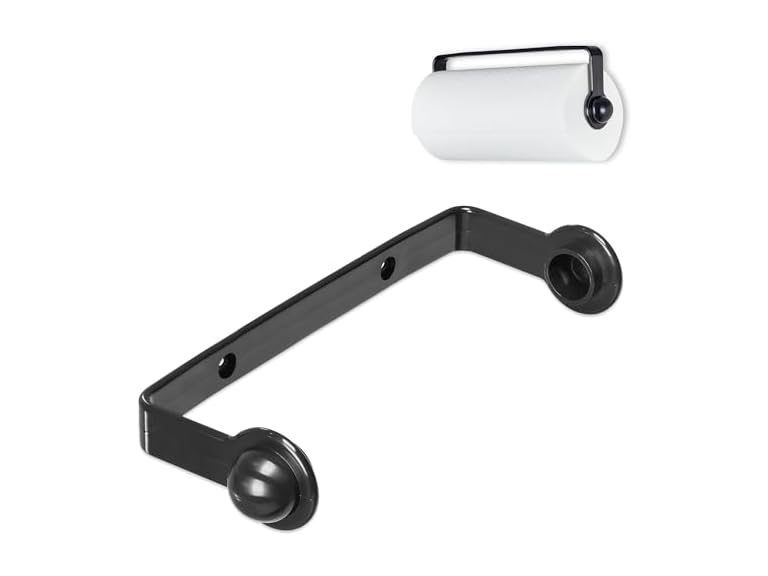 - Spectrum Paper Towel Holder for Under Cabinet Easy Install Wall Mounted Plastic Hanging Paper Roll Rack for Kitchen Bathroom Storage, Durable Mount Towel Dispenser for Standard & Jumbo Rolls, Black