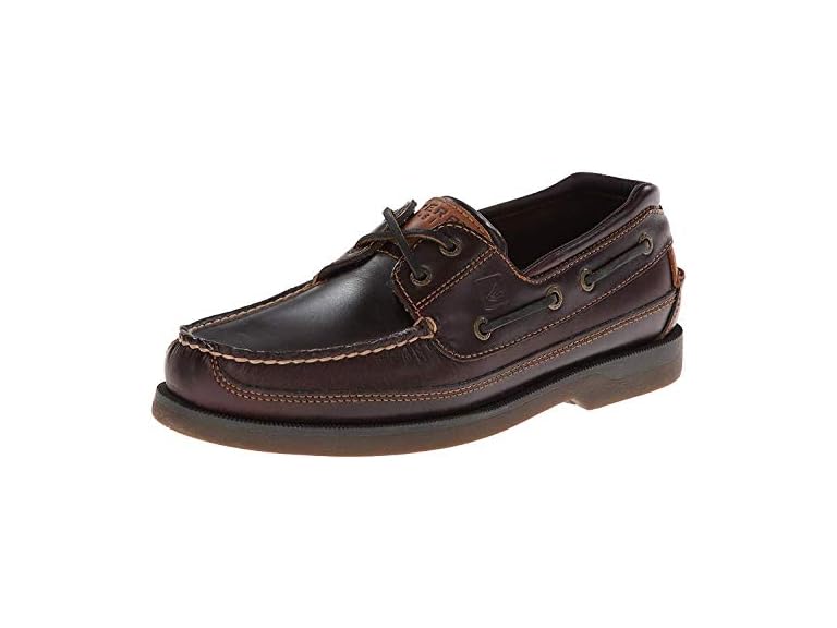 - Sturdy and rugged, this three-eye boat shoe features enhanced shock-absorbing soles, which keep feet comfy all day long.