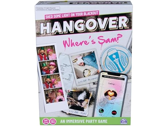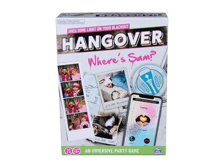 - (1) Spin Master Games, Hangover: Where’s Sam?, an Immersive Mystery Adult Party Game for Bachelorette Parties, Friendsgiving, Valentine's Day Gifts for Couples, 2-4 Players, for Ages 18 & Up