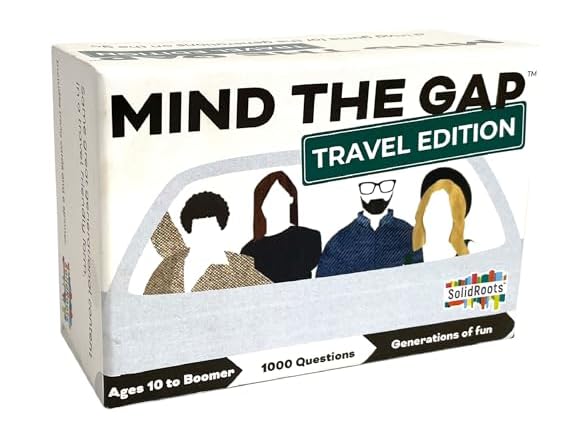 - Spin Master Games, SolidRoots Mind The Gap Travel Edition, A Trivia Game for All Generations, Road Trip Fun on The Go, 2-12 Players, for Ages 10 & Up