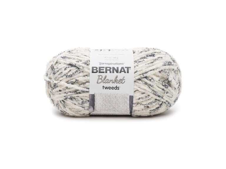 Make a bold statement with this super bulky, soft yarn! This cozy chenille-style yarn is available in a tweed style to compliment your home decor. Knit or crochet beautiful, soft blankets in no time. All Blanket Tweeds are OEKO-TEX certified against more than 300 harmful substances. Weight Category: 6. Content: 100% Polyester. Put up: 10.5oz/300g, 220yds. Gauge: 8st x 13r = 4in/10cm on size US11/8mm knitting needles. Suggested crochet hook size: US11/8mm. Dyelotted: we try but are not always able to match dyelots. Available in a variety of colors. Each sold separately. Machine Wash Cold, Delicate/Gentle Cycle, Do Not Bleach, Tumble Dry Low Heat, Delicate/Gentle Cycle, Do Not Iron, Do Not Dry Clean. Imported.