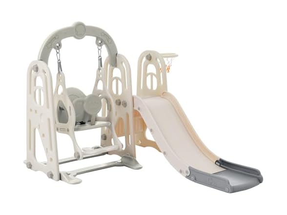 - SPOFLYINN 3 in 1 Toddler and Swing Set Climber Playset with Basketball Hoop Freestanding Indoor Outdoor Playground for Kids Grey One Size