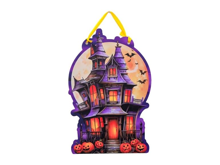 - (1) Spoontiques Door Décor Sign - Weatherproof PVC Signs for Indoor or Outdoor Use - Includes Decorative Ribbon for Hanging - Haunted House Door Sign