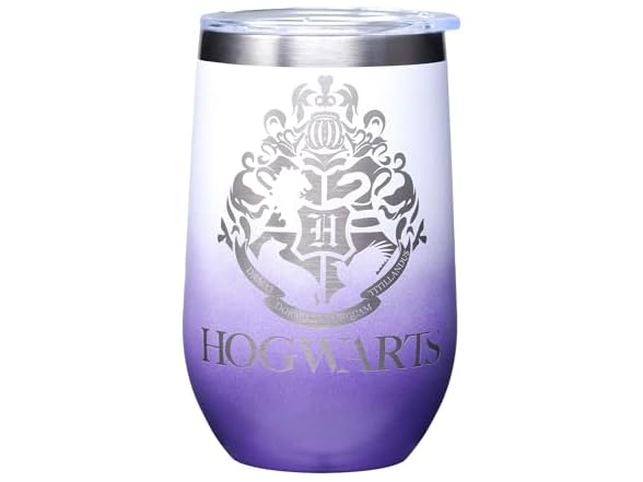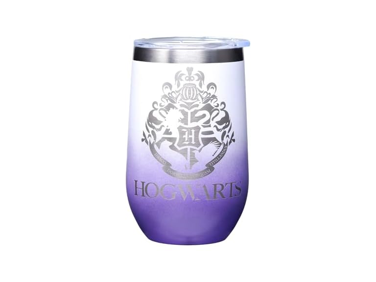 - (1) Spoontiques Hogwarts Etched Stainless Steel Tumbler - Insulated Wine Tumbler with Lid – Double Wall Stainless Steel Stemless Wine Glass – 16oz - 5 5/8" Tall