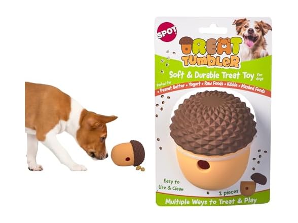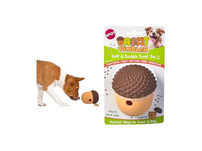 The Treat Tumbler is an innovative, durable silicone two-piece treat toy designed to keep dogs engaged and mentally stimulated. This unique toy combines treat dispensing and spreadable treat holding to offer a versatile and interactive experience for your pet. Ideal for small and medium dogs, it promotes longer play sessions and reduces boredom. With its dual-function design, the Treat Tumbler allows you to add small treats to the bottom for a rewarding treat-dispensing challenge while also providing space for spreadable treats like peanut butter or yogurt at the top. This combination encourages longer-lasting engagement and supports dogs' natural foraging instincts. Made from high-quality, non-toxic, and durable silicone, this toy is tough enough to withstand enthusiastic play while remaining gentle on teeth and gums. Unlike traditional chew toys, the flexible material enhances the experience by allowing natural movement, making it an excellent choice for interactive play. The Treat Tumbler is freezer-safe, making it perfect for frozen treats that can help cool dogs down on warm days while extending their playtime. Additionally, it is top-rack dishwasher safe, allowing for quick and easy cleaning after use. The Treat Tumbler is compatible with kibble, raw food, mashed foods, and soft treats, making it a versatile choice for pet enrichment. Whether your dog enjoys licking, chewing, or working for their treats, this toy delivers mental stimulation and entertainment for hours. Available in multiple fun shapes like Acorn, Broccoli, and Mushroom, this enrichment toy is a great alternative to squeaky toys for quiet play. Whether used for independent entertainment or as part of interactive training, the Treat Tumbler keeps dogs engaged, active, and happy. Perfect for pet parents looking for a dog puzzle toy, treat dispenser, and enrichment solution all in one, the Treat Tumbler is an excellent addition to any dog's toy collection.