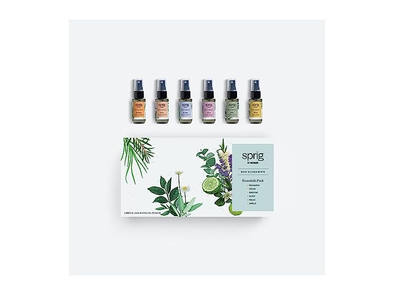 - (1) SPRIG BY KOHLER Body & Linen Mist Variety Pack, 100% Natural Fragrance & Essiential Oils, for Linens, Clothing, or Skin - Six 1 oz scents