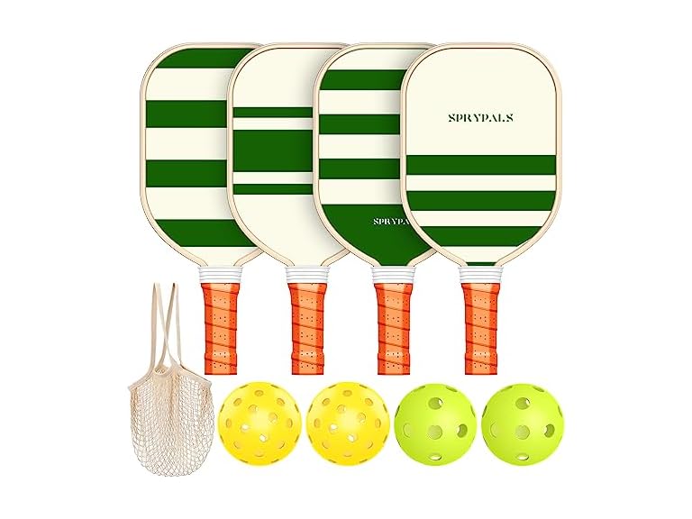 - Great Pickleball Set:Sprypals pickleball set includes 4 premium wooden pickleball rackets, 2 indoor & 2 outdoor balls and 1 carry bag; when you are tired of the regular game, you can choose the pickleball gaming and have a fun time with your family and friends