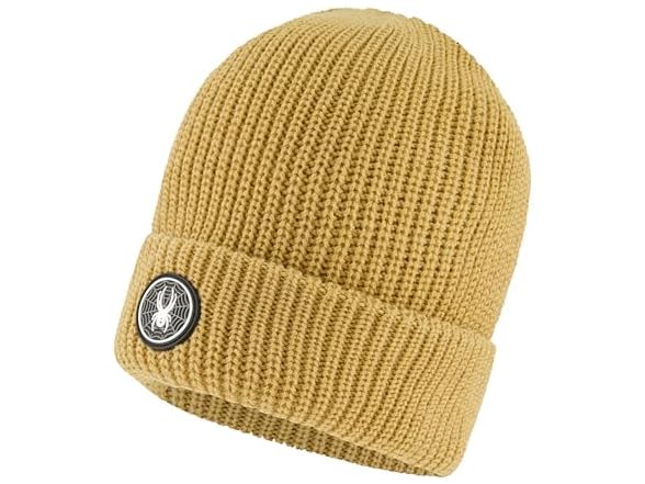 • (1) Spyder Mens Fleece Lined Cuff Logo Beanie, Khaki, One Size