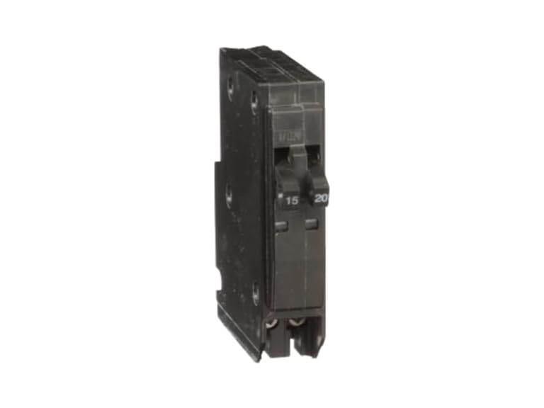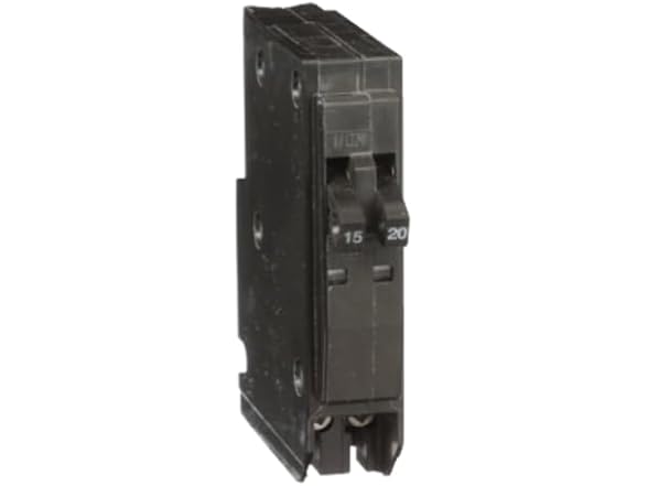 • Square D by Schneider Electric QOT1520CP Tandem Mini Circuit Breaker, QO, 1 x 1 Pole at 15A or 20A, 120/240VAC, 10kA, Plug in Mount, Black
