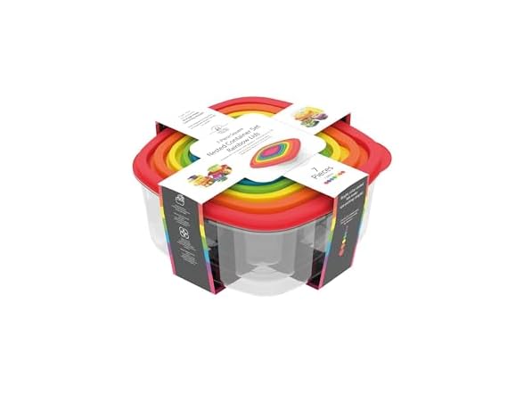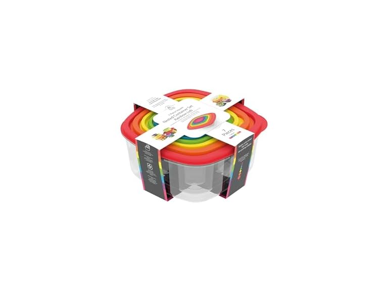 - 7, 14, 21-Piece Square Nested Food Storage Containers Set Rainbow Lids