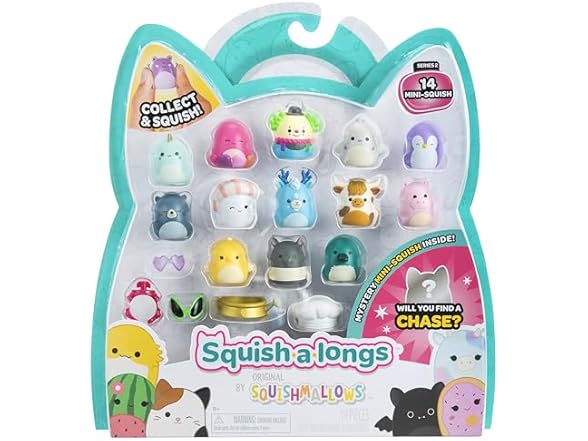 - 14 MINI-SQUISH Your favorite Squishmallows are now available in a new 1-inch size; 14 Series 1, Wave 2 Mini-Squish included