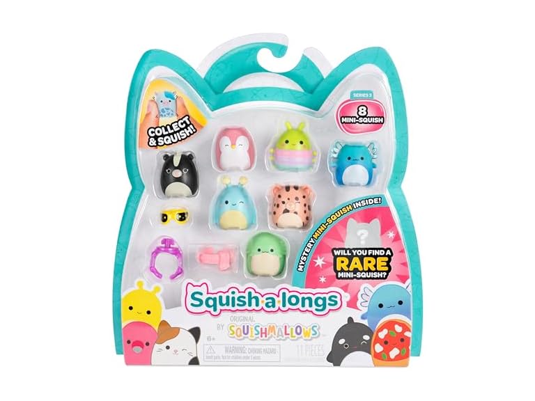- SQUISH-A-LONGS Squish on the go with Squish-a-longs! These 1-inch plastic collectibles feature your favorite Squishmallows styles and make the perfect portable addition to any Squishmallows Squad.