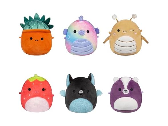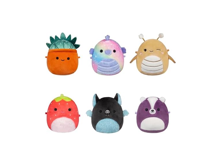 - This Micromallows plush 6-pack includes Squishmallows favorites Greer the Grasshopper, Emerald the Seahorse, Sloan the Skunk, Oz the Succulent, Scarlet the Strawberry, and Aldous the Bat in their smallest size yet.