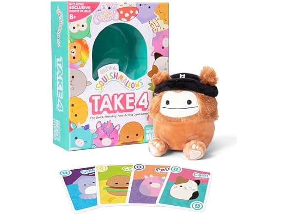 - Choose Your Squad: The official Squishmallows Take4 game has arrived! An action-packed frenzy for every stuffed animal lover, it's a fun way to stay connected with family and friends on game night.