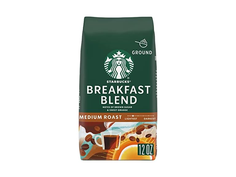 - Starbucks Ground Coffee, Medium Roast Coffee, Breakfast Blend, 100% Arabica, 1 Bag (12 Oz)