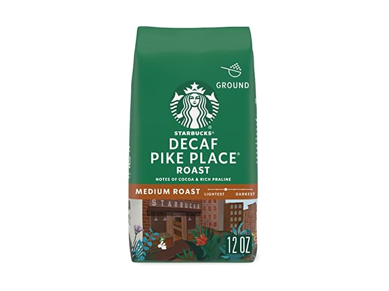 - Starbucks Ground Coffee, Medium Roast Coffee, Decaf Pike Place Roast, 100% Arabica, 1 bag (12 oz)