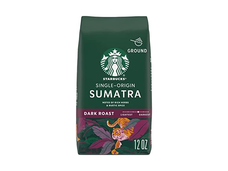 - STARBUCKS SINGLE-ORIGIN SUMATRA COFFEE—This full-bodied single-origin dark coffee has notes of rich herbs and rustic spice