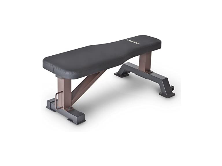 - FULL-BODY WORKOUT -The Steelbody Flat Utility Bench lets you get a full-body workout so you can chisel your body the way you want it. Paring with free weights such as dumbbells allows you to do a variety of exercises with this versatile equipment.