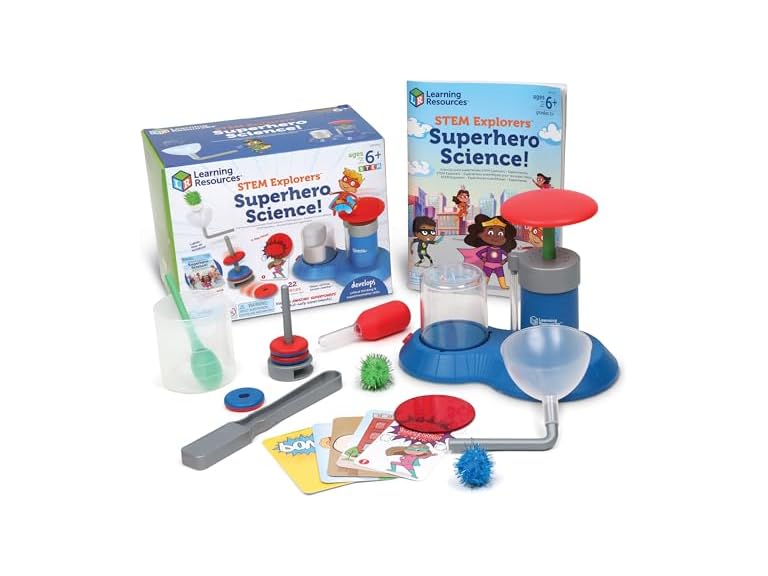 - The Science of Superheroes: Kids learn the science behind magnetism, levitation, color mixing, and other STEM feats when they explore this science kit’s superhero-themed experiments!