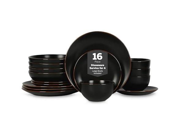 - (1) Stone Lain Brasa Modern Stoneware 16 Piece Dinnerware Set, Plates and bowls Sets, Dish Set for 4, Black
