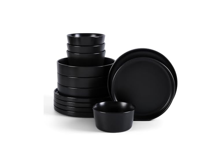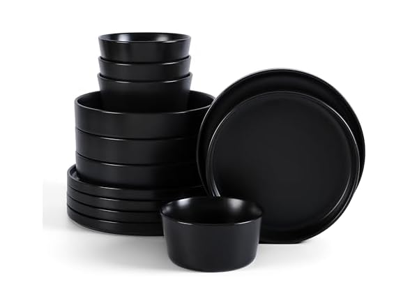- (1) Stone Lain Celina Stoneware 12-Piece Dinnerware Set, Cereal and Pasta Bowls, Black, Coupe