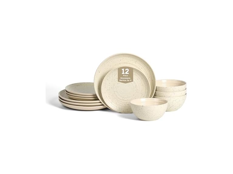 - SERVICE FOR 4: Our Dua 12-Piece Stoneware Round Dish Set includes 4 large round dinner plates, 4 round salad plates, and 4 round bowls, making it the ultimate go-to for dining with friends and family.