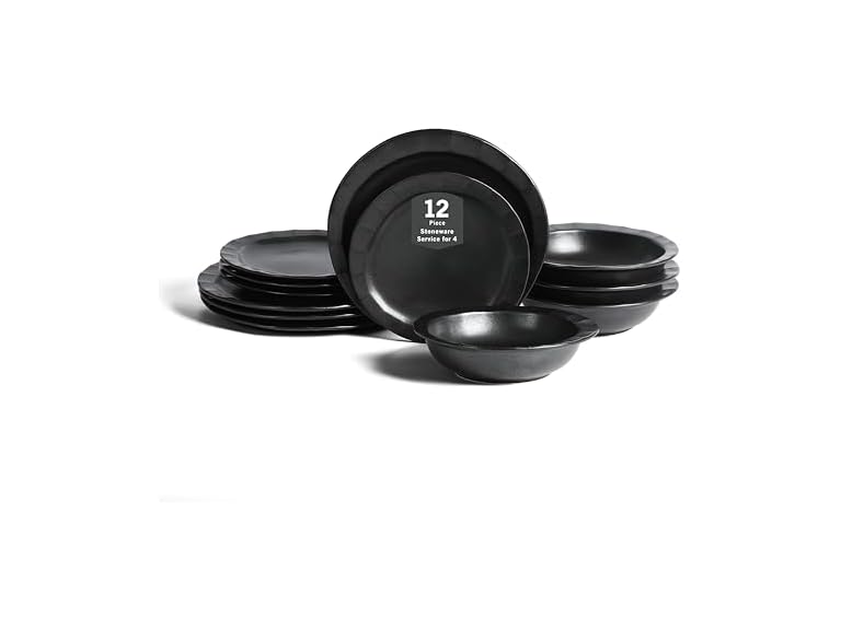 - (1) Stone Lain Oasis 12-Piece Dinnerware Set Stoneware, Dishwasher and Microwave Safe Plates and Bowls Set, Dish Set for 4, Black