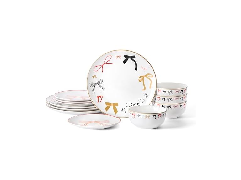 - Add a touch of playful elegance to your table with the Rosie Collection, a 12-piece porcelain dinnerware set in crisp white with a glossy finish. Each piece features a unique girly bow design, making every plate and bowl one-of-a-kind. Durable, lightweight, and microwave-safe, Rosie is perfect for casual meals, elegant dinners, or special gatherings where a little charm goes a long way.