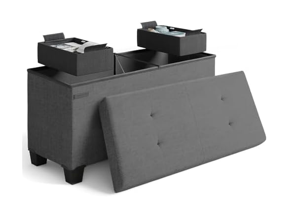 - (1) StorageBud Storage Ottoman Bench with Bins, 30-in Storage Bench for Bedroom End of Bed, Folding Foot Rest Ottoman for Living Room Max 660lbs, Fabric Ottomans, Grey