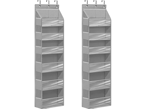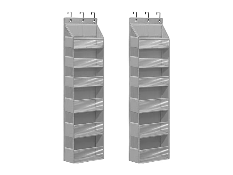 - STORAGEIDEAS Over Door Organizer with 6 Extra Large Pockets and 12 Side Pockets, Large Capacity Hanging Storage Organizer with Clear Window for Shoes, Diapers, Grey, 6 Layers, 2-Pack