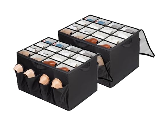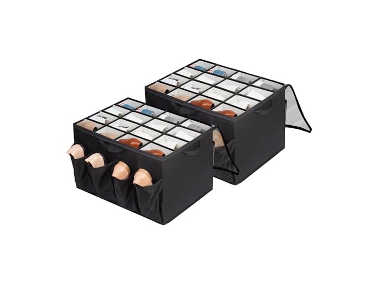- STORAGEIDEAS Shoe Organizer for Closet, Fits up to 24 Pairs, Fabric Shoe Box Storage Containers with Adjustable Dividers and Clear Cover, Black, 2 Pack