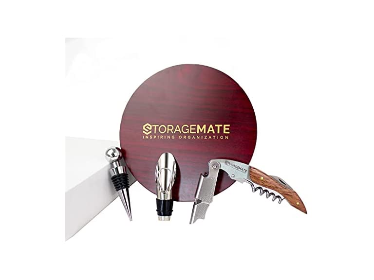 (1) StorageMate Round Wine Opener Set in an Elegant Wood Case, includes: