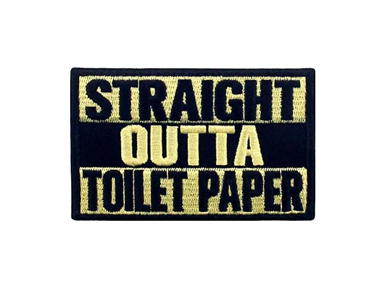 - (1) Rocking Planet Straight Outta Toilet Paper Patch Embroidered Funny Applique Fastener Hook & Loop Emblem