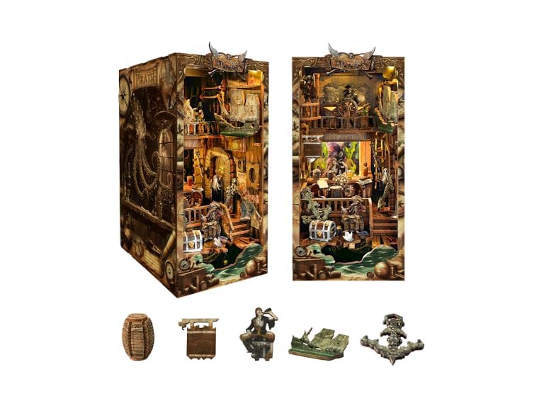 - DIY Fun: Craft Your Own Miniature Masterpiece. Ideal for book nook kits for beginners, this kit includes 207 precision-cut wooden pieces and an intuitive step-by-step guide. Assemble the pirate ship’s hull, position tiny crates, and layer "aged" planks with ease—no prior experience needed