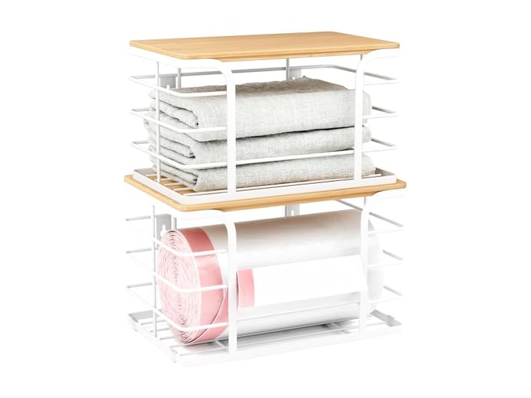 - Easy Access & Space-Saving: A wide front opening makes grabbing bags a breeze. The stackable bamboo top maximizes vertical space, fitting neatly on countertops, in cabinets, or under sinks. Store laundry supplies, produce, snacks, and more—great for kitchen organizers and storage