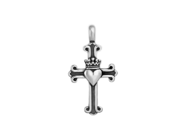 - (1) SUGARKITTEN LONDON Sterling Silver Oxidized Fleury Claddagh Cross Pendant with Heart, Crown, and Love Symbol