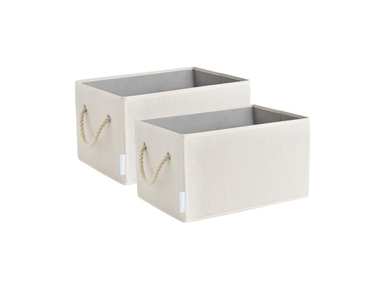 - Sukkiri Collapsible Storage Bin 2-Pack, Sturdy Fabric Organizer Basket with Rope Handles for Closet, Shelf & Home Organization, 14.7"x 10.24"x 8.27" Ivory