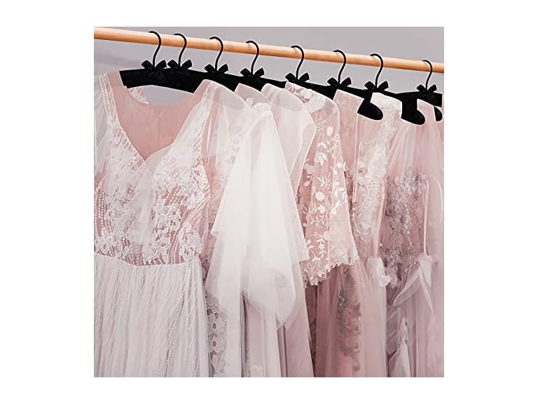 - This set of 10 decorative black satin hangers features an extra-long 17-inch width, providing ample space for your knitwear and delicate clothing without crowding.