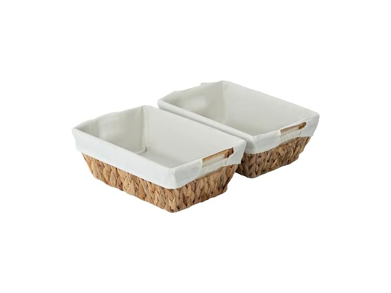 - Sukkiri Homu Trapezoid Storage Basket with Handle, Set of 2 Water Hyacinth Organizer Bins for Bathroom Countertop & Toilet Tank Top, Space-Saving Wicker Bin, 12.6" L x 8.7" W x 4.3" H Natrual