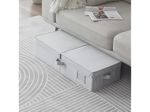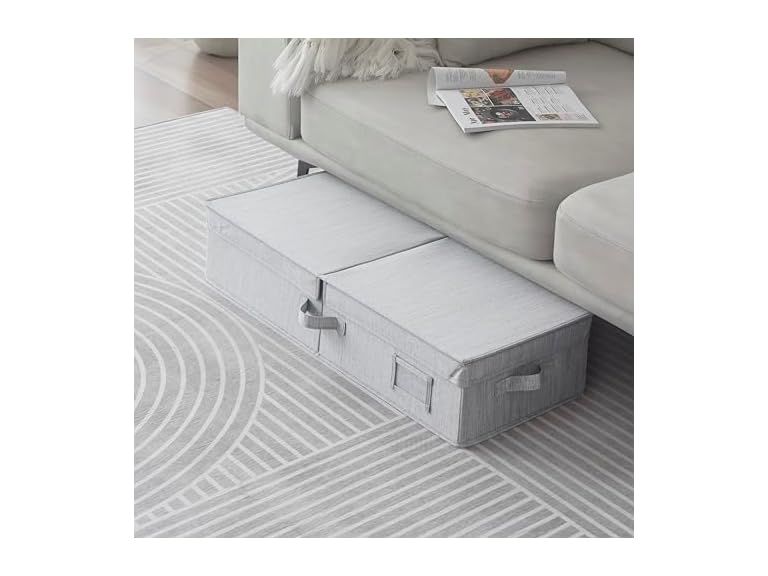 - Sukkiri Homu Under Bed Fabric Zipper Blanket Storage Container Bags with with Flid-Top Lid and Handles, 1-Pack, 30x12x6.5 Inches, Gray