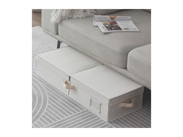 - Sukkiri Homu Under Bed Fabric Zipper Blanket Storage Container Bags with with Flid-Top Lid and Handles, 1-Pack, 30x12x6.5 Inches, Ivory White