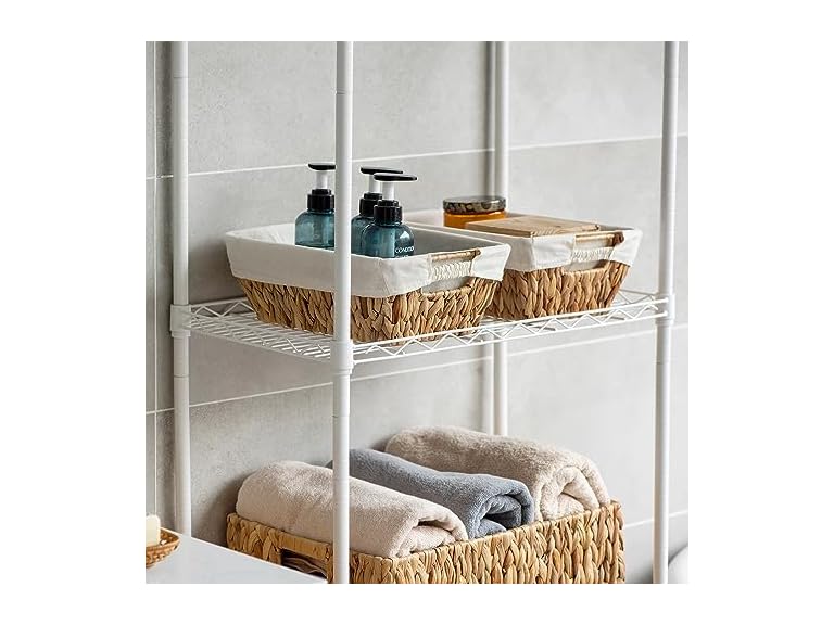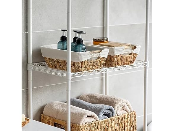 - Sukkiri Homu Wicker Storage Basket with Handles, 2-Pack Shelf Bin for Bathroom Organization, Bedroom & Living Room Storage, Natural Water Hyacinth Organizer Bin with Liner
