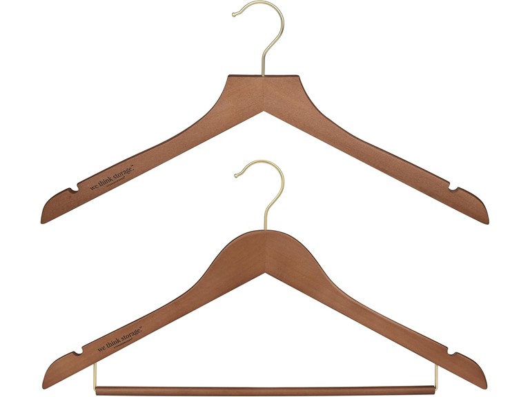 - Sukkiri Homu Wooden Hanger Set for Closet - 30 Pack with 10 Pant Hangers, 20 Non-Slip Clothes Hangers, 360° Swivel Hooks, Brown Solid Wood Hanger