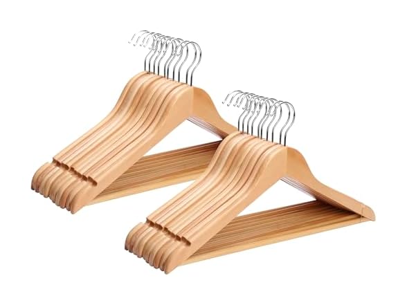 - Sukkiri Homu Wooden Hangers 20 Pack, Durable Wood Hangers with 360° Swivel Hook & Notches, Solid Coat Hanger Wooden for Closet, Natural Color