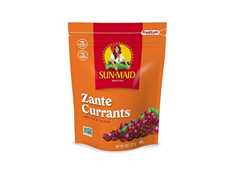 - Sun-Maid California Zante Currants Snack Bags Whole Natural Dried Fruit No Artificial Flavors Non-GMO Vegan And Vegetarian Friendly 8 Ounce , Pack of 1