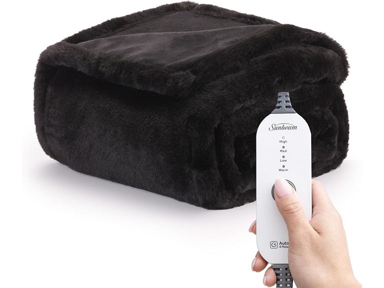 - Sunbeam Royal Faux Fur Night Fog Heated Personal Throw / Blanket, Cozy-Warm, Adjustable Heat Settings