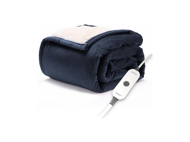 - (1) Sunbeam Royal Mink Sherpa Admiral Blue Heated Personal Throw / Blanket, Cozy-Warm, Adjustable Heat Settings