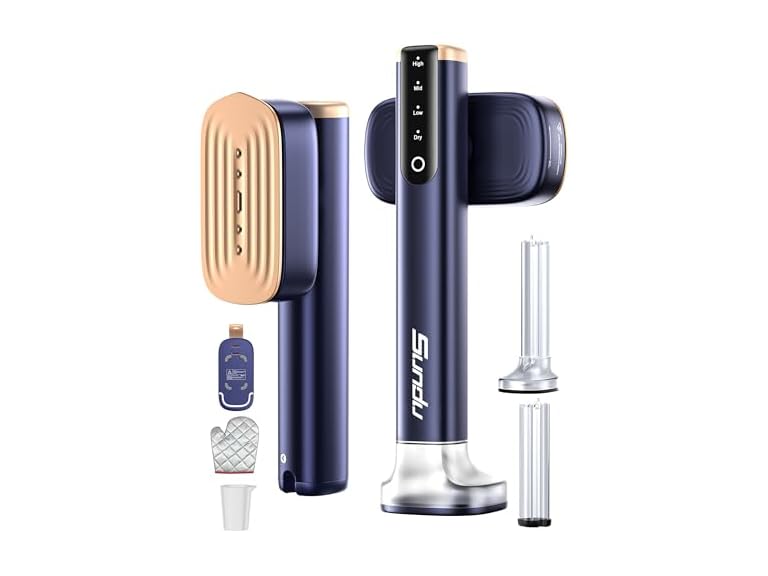 - Powerful & Instant Steam: Experience professional-grade wrinkle removal with the Sundu steamer’s 1200W motor, ready to use in just 15 seconds. It generates intense steam at 24 g/min—free of water droplets—for deep fabric penetration. Whether it’s stubborn creases from washing, drying, or ironing, this steamer smooths them away in seconds while keeping clothes dry. Enjoy a freshly pressed look in no time.