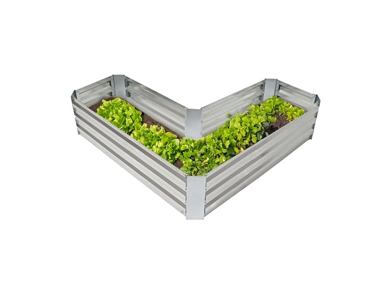- UNIQUE CORNER SHAPE: Add this galvanized raised planter bed to the patio or backyard. The unique L-shaped design makes it a great fit for corners and will add style to any outdoor space.