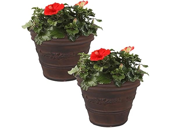 - (1) Sunnydaze 13-Inch Laurel Large Plant Pot with Drillable Drainage Holes - 2 Pack - Rust